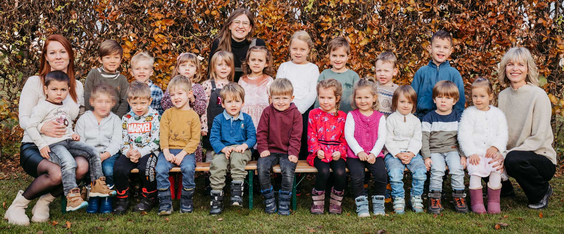 Gruppenaufteilung Gelbe Gruppe:Integrationsgruppe Kindergarten: 15 Kinder (Erdgeschoss)Pädagogisches Team: Marlene, Ines und MartinaTelefon: 06234/7024-5 Grüne Gruppe:Regelgruppe Krabbelstube: 11 Kinder (Erdgeschoss)Pädagogisches Team: Sophie und GeaninaTelefon: 06234/7024-4 Blaue Gruppe:Regelgruppe Kindergarten: 21 Kinder (erster Stock)Pädagogisches Team: Elisa und AndreaTelefon: 06234/7024-3 Rote Gruppe:Integrationsgruppe Kindergarten: 20 Kinder (erster Stock)Pädagogisches Team: Julia, Kathrin, Renate und MichaelaTelefon: 06234/7024-2
